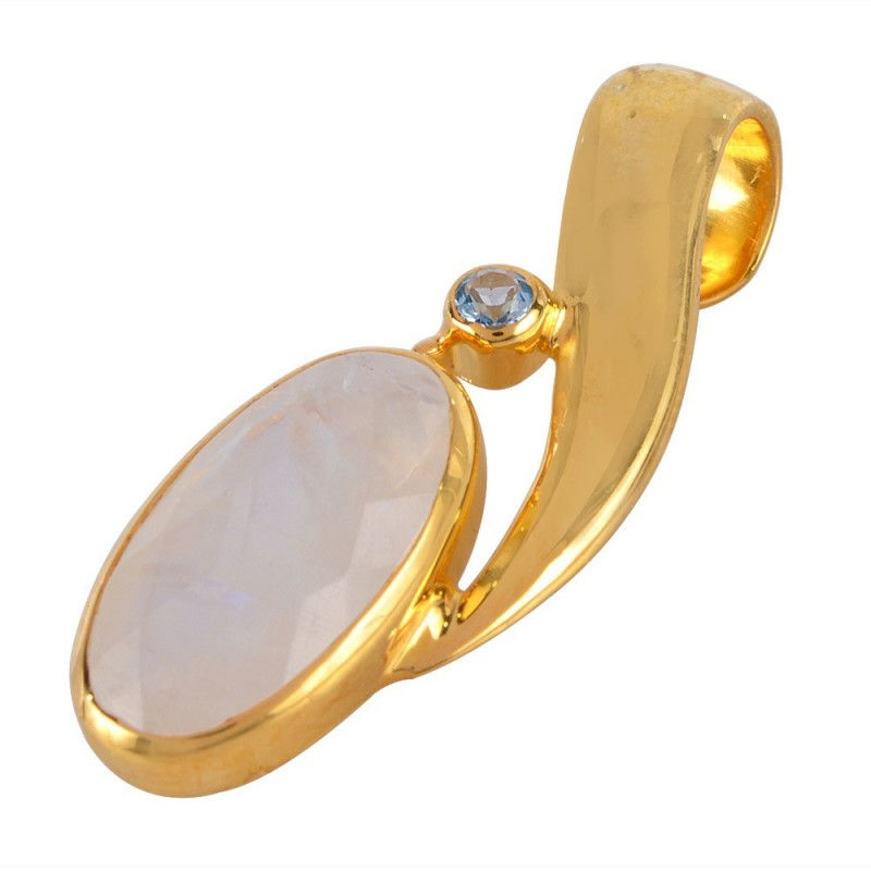 Rainbow Moonstone Gold Plated Brass Pendant